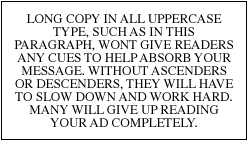 You can see for yourself how much easier upper and lowercase type helps get your message across. Read the copy in the box above, and then try reading the copy in the box below.